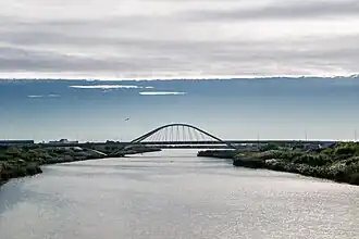 - ↑ BARCELONA, RAMON COMORERA / (18 de abril de 2015). «Acabado el icónico puente de la Gola del Llobregat tras 7 años de obras». El Periódico. Consultado el 26 de octubre de 2016.