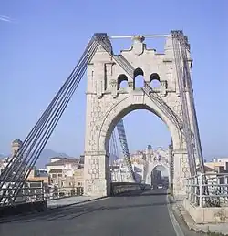 Fue el segundo puente colgante del mundo construido con el sistema de hormigón armado, después del puente de Brooklyn de Nueva York, en el que está inspirado.