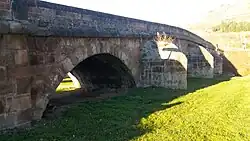 Su traza medieval ha ido formándose con diversas intervenciones conformadas en el siglo XVII que forman lo que es todo el conjunto del puente, además la utilización de la piedra arenisca rojiza, hace que este en perfecta armonía con el paisaje que le rodea.