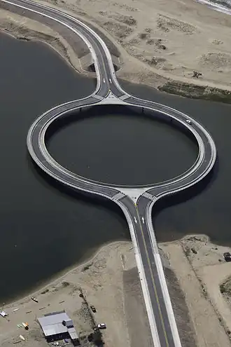- ↑ Huffington Post (27 de enero de 2016). «This Circular Bridge Encourages Drivers To Slow Down And Take In The View» (en inglés estadounidense). National Sun Times. Archivado desde el original el 23 de junio de 2016. Consultado el 19 de mayo de 2016. «...Each half circle on the bridge acts as a one-way street ... drivers will have to slow down to cross, ...»