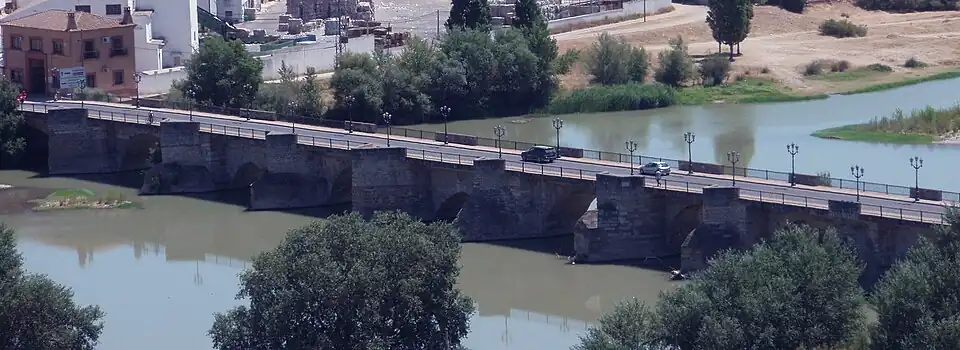 El puente tiene una longitud de 360 m, construido en piedra, y está compuesto por 16 pilas y 17 arcos, todos desiguales. Las 16 pilas tienen tajamares en ángulo aguas arriba y pilastrones rectangulares aguas abajo. Los arcos 1, 2, 3, 4, 7, 9, 13 y 15 son pequeños y ojivales. Los cuatro primeros son probablemente los más antiguos, pues debido a su recogida situación siempre han estado protegidos de las múltiples riadas. El resto de arcos son semicirculares y son el producto de reparaciones posteriores.