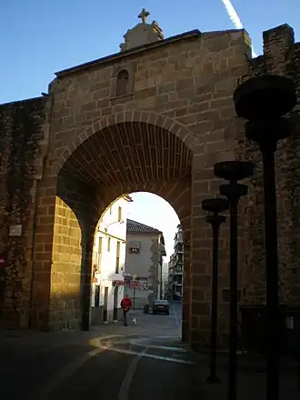 Puerta del Sol desde el interior del recinto amurallado, con el hospital de San Roque al otro lado del vano | ||