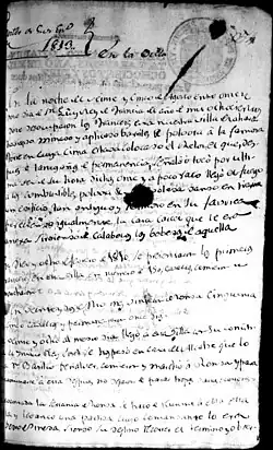 - "En la noche de veinte y cinco de agosto entre once y doce...del año de mil ochocientos doce desocuparon los franceses esta nuestra villa de zahara habiendo minado y aplicado barriles de pólvora a la famosa torre en cuya cima estaba colocado el relo, el que,después de tantos años de permanencia, señaló o tocó por última vez de su hora dichas once y a poco rato llegó el fuego a los combustibles pólvora...volada dando en tierra un edificio tan antiguo y hermoso en su fábrica pereciendo igualmente la casa cárcel que le era anexa sirviendo de calabozos las bóvedas de aquella".