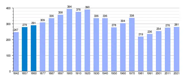 | Gráfica de evolución demográfica de Puerto Moral[2] entre 1842 y 2021 |
