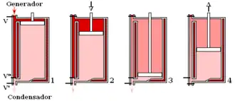 - En la configuración gemela de combustión interna, dos pistones de oposición alcanzan el punto muerto simultáneamente, que también se llama la dislocación 0°.