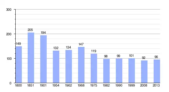 | Gráfica de evolución demográfica de Puymangou entre 1800 y 2013 |