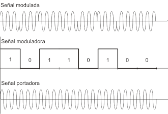 La modulación PSK se caracteriza porque la fase de la señal portadora representa cada símbolo de información de la señal moduladora, con un valor angular que el modulador elige entre un conjunto discreto de "n" valores posibles.