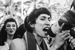Quimey Ramos es una activista por los derechos travesti-trans, influenciada por Lohana Berkins, Diana Sacayán y Marlene Wayar.[3]