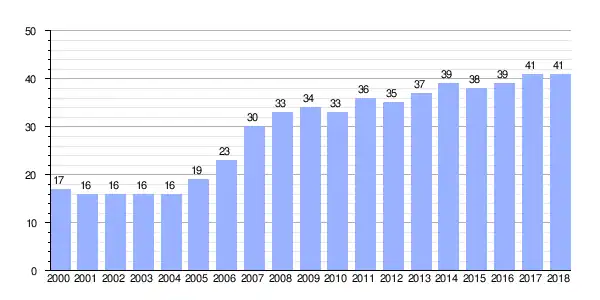 | Gráfica de evolución demográfica de Quintáns entre 2000 y 2018 |