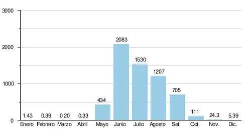 En cuanto al periodo estival, libre de heladas (de junio a septiembre inclusive), el caudal mensual mínimo observado ha sido de 202 m³/s en septiembre de 1979, lo que es bastante.