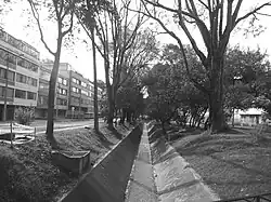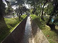 Durante la década de los años treinta el río es canalizado con adoquines buscando crear una armonía con las fachadas de ladrillo a la vista.