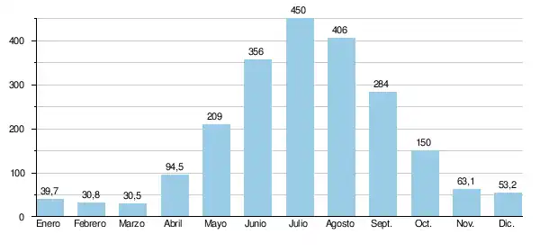 Considerando solamente el periodo estival, libre de hielos (de mayo a octubre incluido), el caudal mensual mínimo observado fue de 112 m³/s en octubre de 1943.
