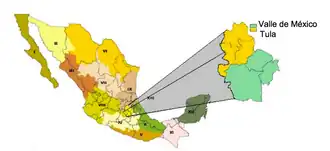 La región administrativa número XIII, Aguas del Valle de México, tiene una superficie total de 16 426 kilómetros cuadrados, está formada por los territorios del Distrito Federal, gran parte del Estado de México, el Estado de Hidalgo y el de Tlaxcala. Esta región presenta la mayor ocupación poblacional, y es la menor en extensión territorial. Para mejorar la administración de la zona esta región se divide en dos subregiones: la del Valle de México conformada por 69 municipios y 16 delegaciones; y la subregión Tula por 31 municipios.