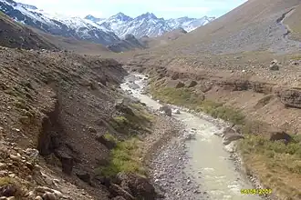 - Damas (Rio de las). Nace de ventisqueros, contiguos al cordón limitáneo con la Arjentina, corre hacia el SW, recibe el rio de Palacios que le viene del N i continúa al SW en un cajón estrecho; tiene 5% de pendiente hasta la desembocadura del cajón de Herrera que le cae del SE, desde donde cambia hacia el W i corre en un valle ensanchado hasta las vegas de El Flaco, de la parte superior del cajón del Tinguiririca. 61, XX, p. 27; 119, p. 74 i 134; 134; i 156.