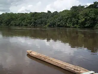 Piragua en el Dja en la región del Este (Camerún), al sur de Lomié y al norte de Ngoila | ||
