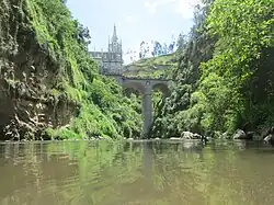 En su trayecto, al socavar la montaña formó el puente natural de Rumichaca que comunica a Ecuador y Colombia; formando desde este sitio un profundo cañón que en territorio colombiano aloja el santuario de Las Lajas, construido sobre la oquedad del cañón.
