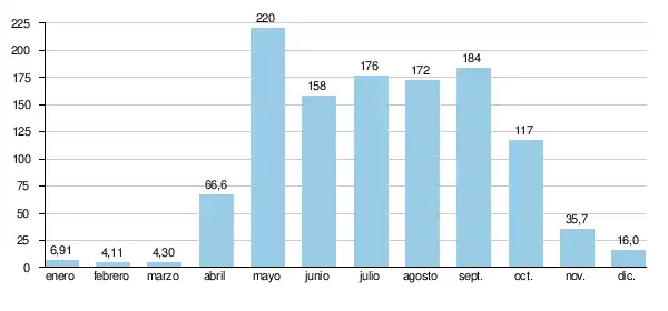 | Caudal medio | en Jailastui, 98 m³/s | |
