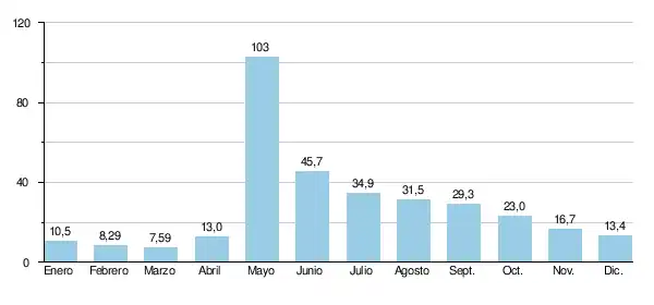 En el mes de octubre y luego en el de noviembre, el caudal del río desciende de nuevo, lo que conduce al periodo de estiaje, que tiene lugar de noviembre a abril incluido.