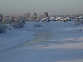 El Onega congelado a su paso por Shelójovskaya (Шелоховская), distrito de Kárgopol | ||