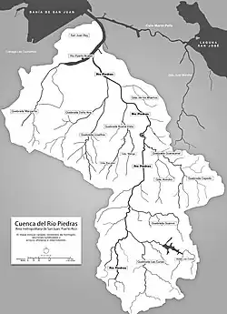 Veintisiete (27) arroyos (o quebradas) drenan la cuenca del río Piedras, una cuenca altamente urbanizada en el Área Metropolitana de San Juan, y según la Agencia de Protección Ambiental de los Estados Unidos y por el Servicio de Conservación de Recursos Naturales del Departamento de Agricultura de los Estados Unidos, con un alto grado de alteración humana y una variedad de fuentes contaminantes en la mayor parte de los tramos evaluados.[3]