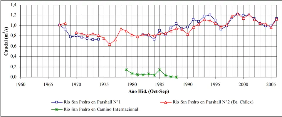 La cuenca del San Pedro recibe lluvias de entre 75 y 250 mm por año, que es la fuente de su caudal, haciendo del río un curso de agua de régimen pluvial.[1]: 8