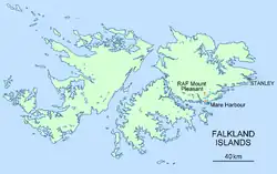 La RAF previamente utilizó una pequeña base en el aeropuerto de la capital después del final de las hostilidades en 1982. Durante la guerra de las Malvinas, cuando las islas fueron tomadas por Fuerzas Armadas argentinas, aviones británicos Avro Vulcan de la RAF fueron enviados a bombardear la pista de la capital de las islas (Operación Black Buck) y Sea Harrier de la Marina Real británica hicieron raids moderadamente exitosos. La primera misión de bombardeo de los Vulcan arrojó 1000 libras de bombas sobre la mitad de la pista sin inutilizarla. Sin embargo, las reparaciones realizadas por los argentinos permitieron que aviones de transporte Lockheed C-130 Hércules continuaran utilizándola hasta el final del conflicto. Después del final de las hostilidades la pista fue plenamente reparada por ingenieros militares británicos.