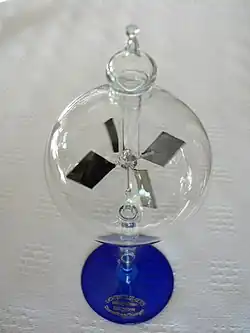 El radiómetro de Crookes o molinillo de luz (light-mill) es un dispositivo inventado en 1873 por el químico inglés William Crookes. Consiste en cuatro brazos que sostienen cada uno un álabe o placa en sus extremos, pintados de blanco de un lado y de negro del otro. Los cuatro brazos que soportan las placas están suspendidos en una aguja y sostenidos por un eje de vidrio para disminuir en lo posible la fricción. Este molinito se encuentra dentro de una esfera de vidrio sellada y en la que se ha realizado un vacío parcial.
