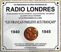 - ↑ a b «Radio Londres, une arme de guerre». Chemins de Mémoire (en francés). París: Ministerio de Defensa de Francia. Consultado el 4 de agosto de 2017.