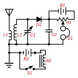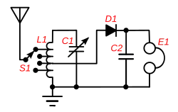 - ↑ a b c d Wenzel, Charles (1995). «Simple crystal radio». Crystal radio circuits. techlib.com. Consultado el 7 de diciembre de 2009.