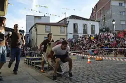 - 1º Tramo: Prueba de fuerza bruta. Este tramo se realiza en la ya comúnmente conocida como "Costa das Carretillas". El tramo consta de una cuesta de unos cien metros que los participantes han de subir y descender. Se trata de un recorrido que exige una gran expresividad al ser un trayecto corto, pero de una exigencia física elevada