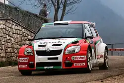 Marco Signor pilotando un Skoda Fabia S2000 en la edición de 2010.