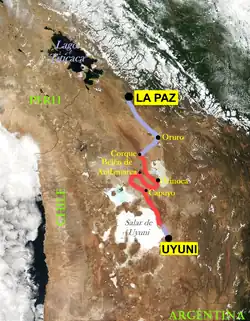 - ↑ Badani Ruiz, Javier (25 de marzo de 2007). «Pulacayo, el pueblo que desfallece en Potosí». La Razón.