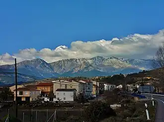 Vista de la localidad con la sierra de Gredos al fondo. | ||