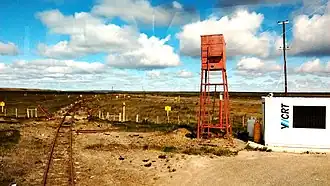 - ↑ También fue la línea férrea más austral del planeta hasta la puesta en marcha, en 1994, del Ferrocarril Austral Fueguino en trocha de 500 mm.