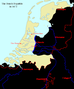 - ↑ Los enviados ingleses Arlington y Buckingham que iban hacia Luis XIV en Utrecht se dirigieron primero a Guillermo Príncipe de Orange: "Le pedimos que pensara bien no sólo en alejar la guerra de su país, sino en establecer una soberanía sobre él, en la que ambos reyes le protegieran de todo peligro tanto en el extranjero como en casa. Él respondió que le gustaba más la condición de Estatúder que le habían dado, y que se creía obligado en su conciencia y honor a no anteponer sus intereses a sus obligaciones."[4]