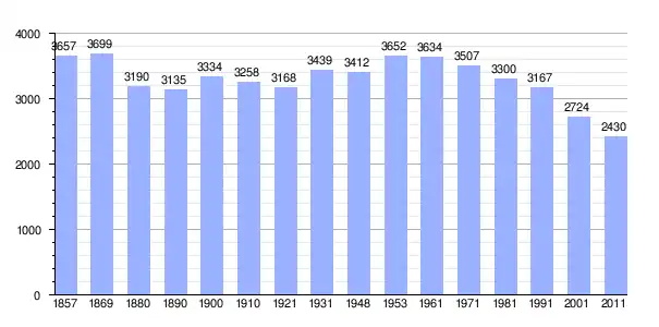 | Gráfica de población de Ravna Gora 1857-2011 |