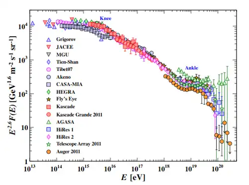 - ↑ Dova, M. T. (19 de marzo de 2013). «Ultra-high energy Cosmic Rays». Proceedings of the 2013 CERN–Latin-American School of High-Energy Physics, Arequipa,Peru. doi:10.5170/CERN-2015-001.169. Consultado el 7 de abril de 2019.