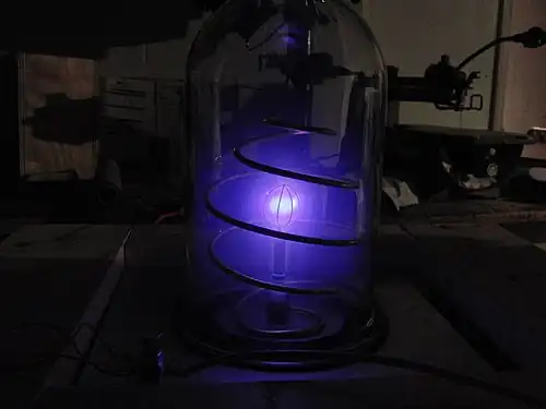 Es el cuarto estado de la materia; es un gas ionizado, o sea que los núcleos están separados en dos tipos de partículas: iones (positivos) y electrones (negativos).[10] De este modo el plasma es un estado parecido al gas, pero compuesto por electrones, cationes (iones de carga positiva) y neutrones, todos separados entre sí y libres. Por esta razón es un excelente conductor.[11]