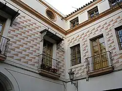 Desde el número 2 hasta el 10 de la actual calle Joaquín Hazañas todo era también propiedad de Manuel Marañón Martínez, que a finales del siglo XIX alegaba que había un "castillo" adosado a la portada que también era suyo.[22] En el siglo XXI se descubrió inserta en el complejo y cerca de la portada una torre almohade,[23] bautizada por algunos como Torre del Bronce.