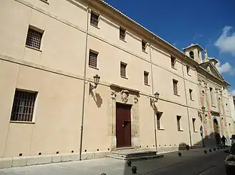 Este edificio fue levantado en el lugar que habían ocupado los jesuitas y donde se impartían clases de la Universidad de Orihuela fundada en 1569, tales como la Cátedra de Gramática y la de Retórica, amén de otras enseñanzas como Filosofía y Teología. Tras la expulsión de aquellos por el rey Carlos III, se decidió darle al edificio el mismo uso con el fin de que se convirtiese en una escuela para niñas de la ciudad de Orihuela y su diócesis. Tal como indica Madoz, fue demolida la iglesia existente, que se había levantado entre 1768 y 1772, y remodeladas sus naves.