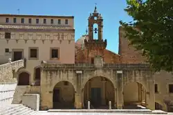 La plaza con renovación del pavimento, igual que las hospederías, el museo, la cocina y el entorno fue restaurado por la Escuela Taller de Traiguera dirigida por el arquitecto Miguel García Lisón.