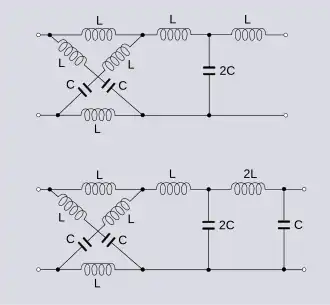 Para la antimetría es necesario que las impedancias de terminación sean también el dual de la otra, pero en muchos casos prácticos las dos impedancias de terminación son resistencias y ambas son iguales a la impedancia nominal R0. Por lo tanto, son simétricas y antimétricas al mismo tiempo.[1]