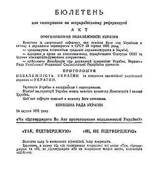 El Referéndum de independencia de Ucrania de 1991 se llevó a cabo en Ucrania el domingo 1 de diciembre de 1991.