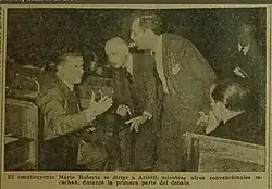 - ↑ a b «Convencionales del 'sabattinismo' abandonaron la asamblea después de fundamentar su disidencia el Dr. Mario Roberto». El Litoral. 17 de octubre de 1957.