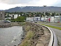 En su zona noroccidental se encuentra el fiordo de Eyjafjörður, el más largo de la zona norte de la isla. Lleva su nombre (en islandés significa 'Fiordo de la isla') por la cercana isla de Hrísey.