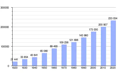 | Gráfica de evolución de Región de Höfuðborgarsvæðið entre 1920 y 2020 |