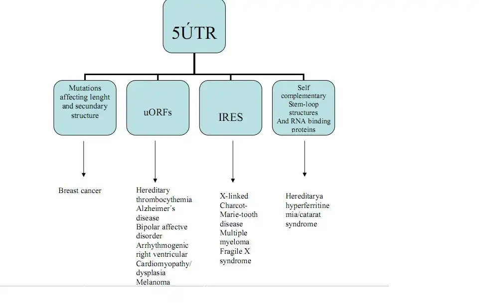 Existen diferentes alteraciones que se producen en las regiones UTR, ya sean en 5´ o 3´, que dan como resultado una determinada enfermedad. En la tabla siguiente se observa claramente una visión global.