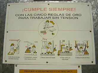 En electricidad, las reglas de oro constituyen el procedimiento más común para trabajar sin tensión en instalaciones eléctricas. Están ampliamente aceptadas entre los profesionales del sector eléctrico, y se encuentran reguladas por normativas nacionales (España,[1]​ Colombia[2]​) y procedimientos de las empresas eléctricas.