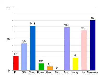 - ↑ Tras la reforma el 70 % de las tierras cultivables estaba en manos de pequeños propietarios.[157]