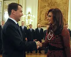 - ↑ Cristina en Rusia: agenda apretada y encuentros con Putin y Medvedev - Clarín (9 de diciembre de 2008).